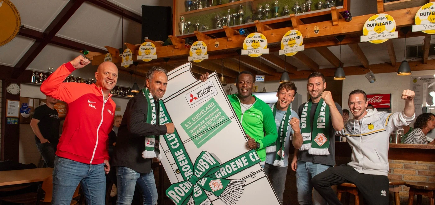 Leden van Sportvereniging Duiveland in het Zeeuwse Oosterland voetballen op een groen veld, maar sinds kort zijn de derde helft en het douchewater ook groen. De club liet recentelijk een Ecodan-warmtepomp van Mitsubishi Electric plaatsen en zette de verduurzaming meteen door in de vorm van (extra) zonnepanelen en vloerverwarming in het clubgebouw. Geen gek verhaal tot nu toe, want om de strijd aan te gaan met de hoge energieprijzen verduurzamen veel voetbalverenigingen op deze wijze. Toch heeft het verhaal van SV Duiveland een bijzonder plot. Ze wonnen namelijk de warmtepomp ter waarde van 30.000 euro tijdens een actie van De Groene Clubweken 2024.